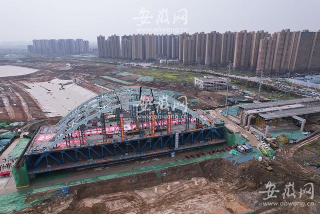 3月27日上午10點多,新安晚報、安徽網(wǎng)、大皖新聞記者在引江濟淮繁華大道橋工程現(xiàn)場看到,主橋拱肋經(jīng)過吊裝、固定、焊接等流程后,完成了合龍段的施工。