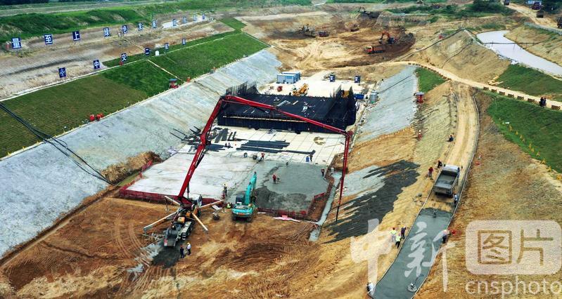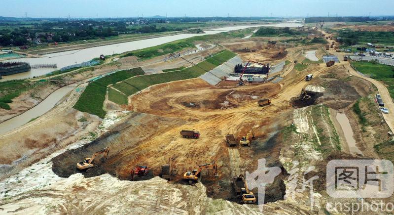 2020年8月7日,航拍引江濟(jì)淮工程安徽省合肥市廬江縣萬山鎮(zhèn)永橋村廬江船閘施工現(xiàn)場一片繁忙景象。
