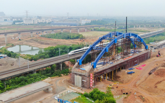 引江濟(jì)淮引起滬蓉鐵路改建工程上跨江淮運(yùn)河特大橋系桿拱順利合龍