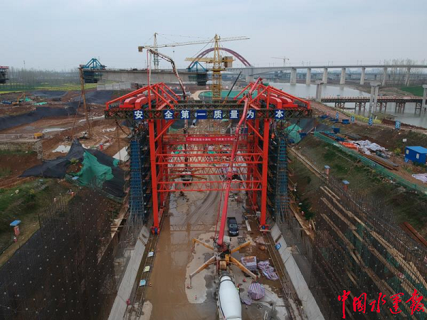 引江濟淮東淝河船閘工程開始閘室墻澆筑