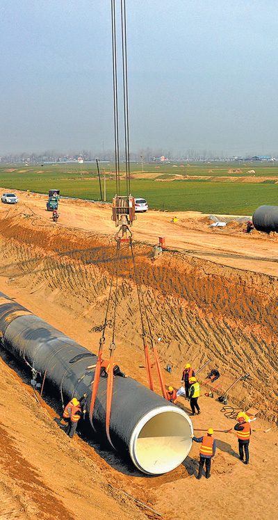 工人在引江濟(jì)淮工程河南永城段施工。